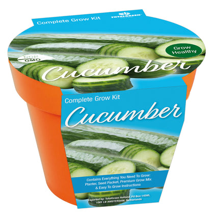 Enjoy the taste of homegrown cucumbers with our cucumber grow kit. This all-in-one kit makes it easy to grow fresh, crunchy cucumbers indoors to start, then move them outdoors as they thrive. Inside, you'll find a durable pot, nutrient-rich growth media, and premium cucumber seeds selected for easy germination and vigorous growth. Simply plant the seeds, keep them in a sunny spot, and water regularly. Before long, you'll have a healthy cucumber plant ready to flourish in your garden or on your patio. Perfect for beginners and seasoned gardeners alike, this kit is a fun and rewarding way to enjoy fresh cucumbers straight from the vine. Start growing today and elevate your salads, snacks, and summer dishes with homegrown goodness! Includes one cucumber grow kit.