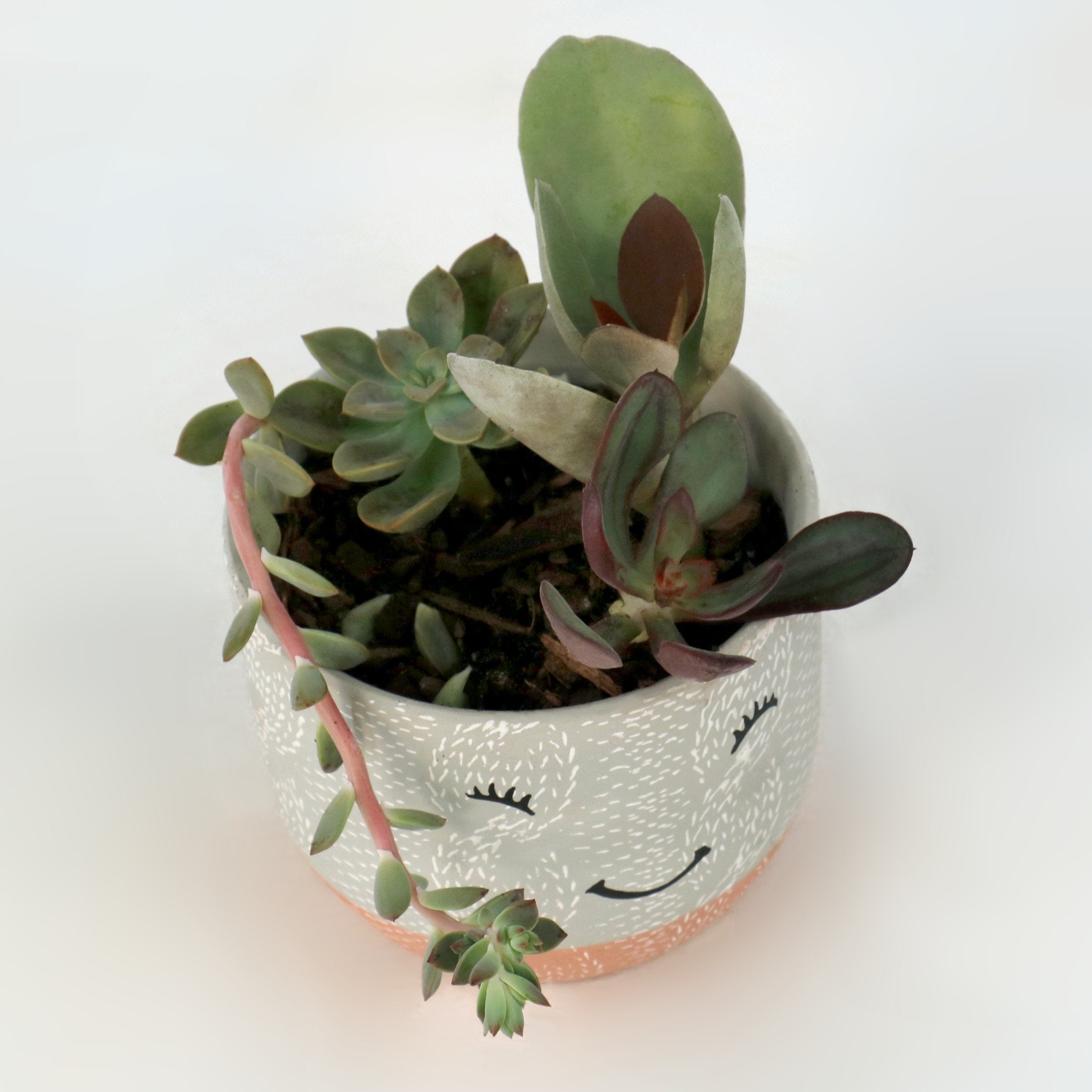 Tiny Gardener Grow Kit: 5" Smiley Pot + 3 Succulents
