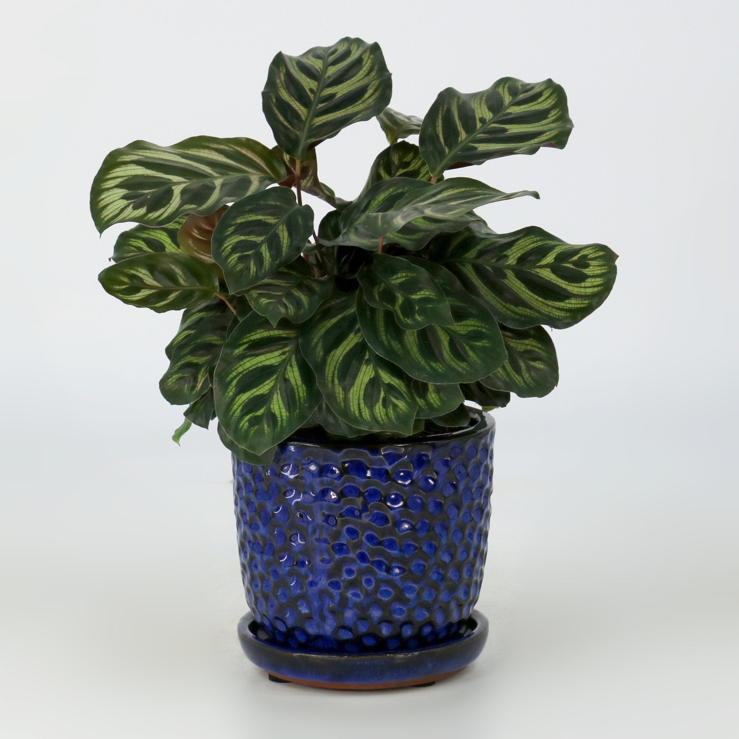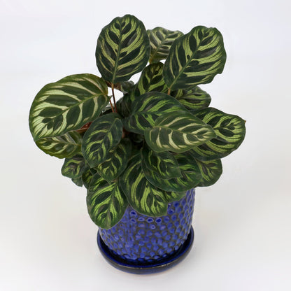 This set features a stunning traditional Blue Abberton Pot, accompanied by a beautiful Calathea Peacock plant. It makes for an easy and thoughtful gift that is sure to bring joy and serve as a lovely reminder of the special event.