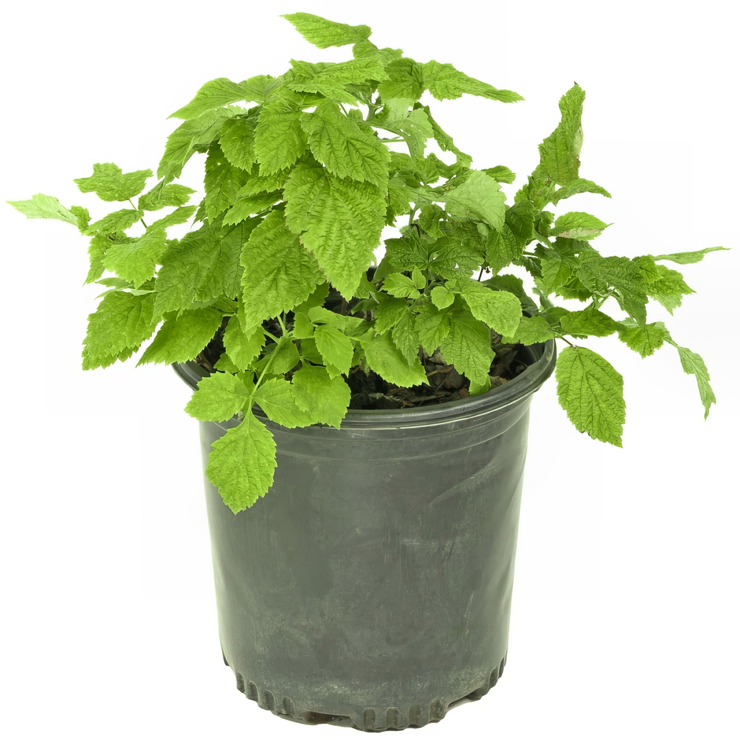 The 'Caroline' raspberry (Rubus idaeus) is a robust and disease-resistant everbearing variety that delights gardeners with its stunningly large, firm, and irresistibly sweet red fruits, renowned for their exceptional flavor. This remarkable raspberry produces two bountiful crops: one in the late summer on vibrant first-year canes (primocanes) and another in the following summer on lush second-year canes (floricanes). 'Caroline' flourishes in full sunlight and well-drained soil, ideally with a pH range of 5.8 to 6.5. Adaptable and resilient, this variety thrives beautifully across USDA Zones 3a to 9, making it a must-have for any berry enthusiast! The offer contains 1 plant in a trade gallon pot.