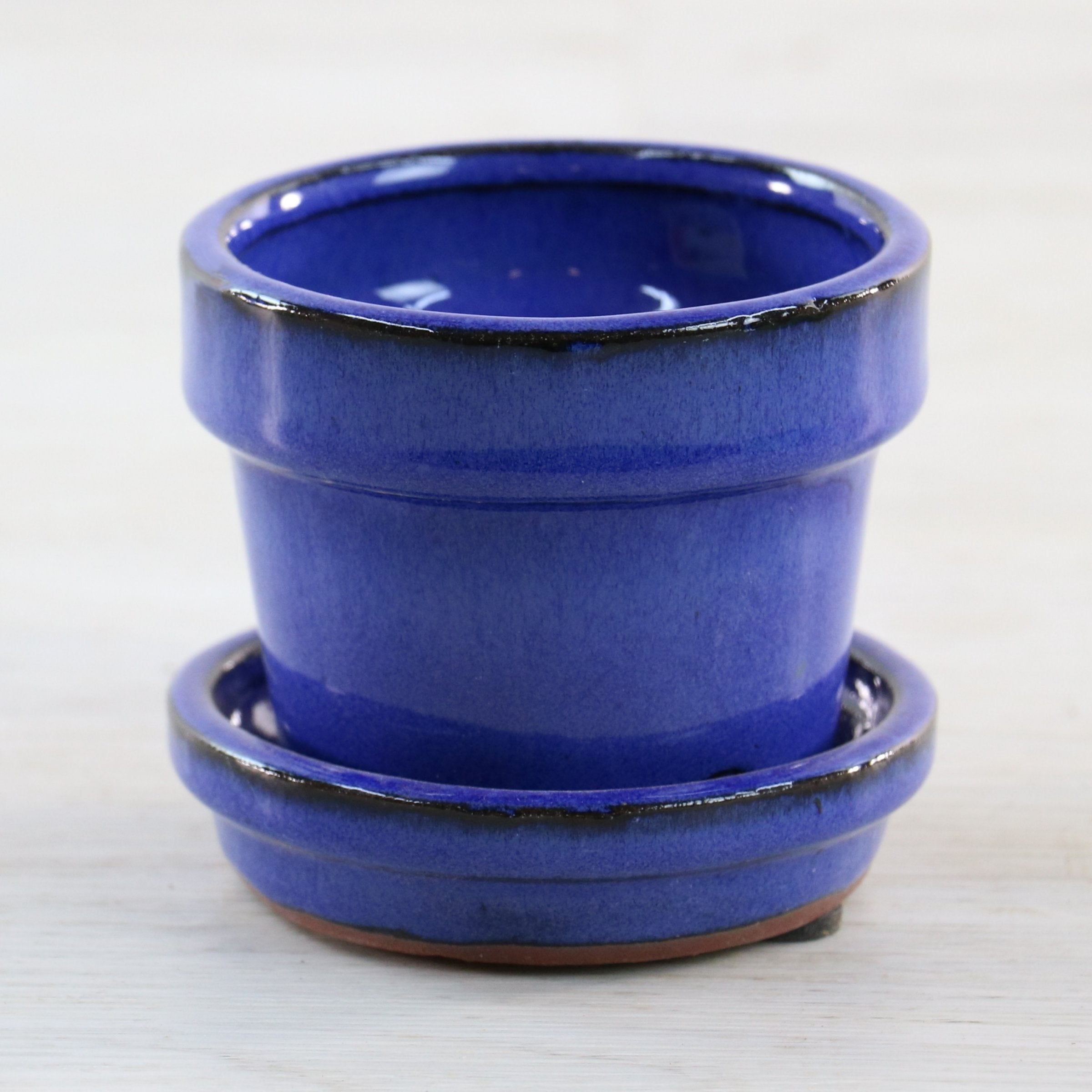 This set contains 3 assorted glazed pots. They are 4" tall / 4" across the base / 5" across the top opening.
