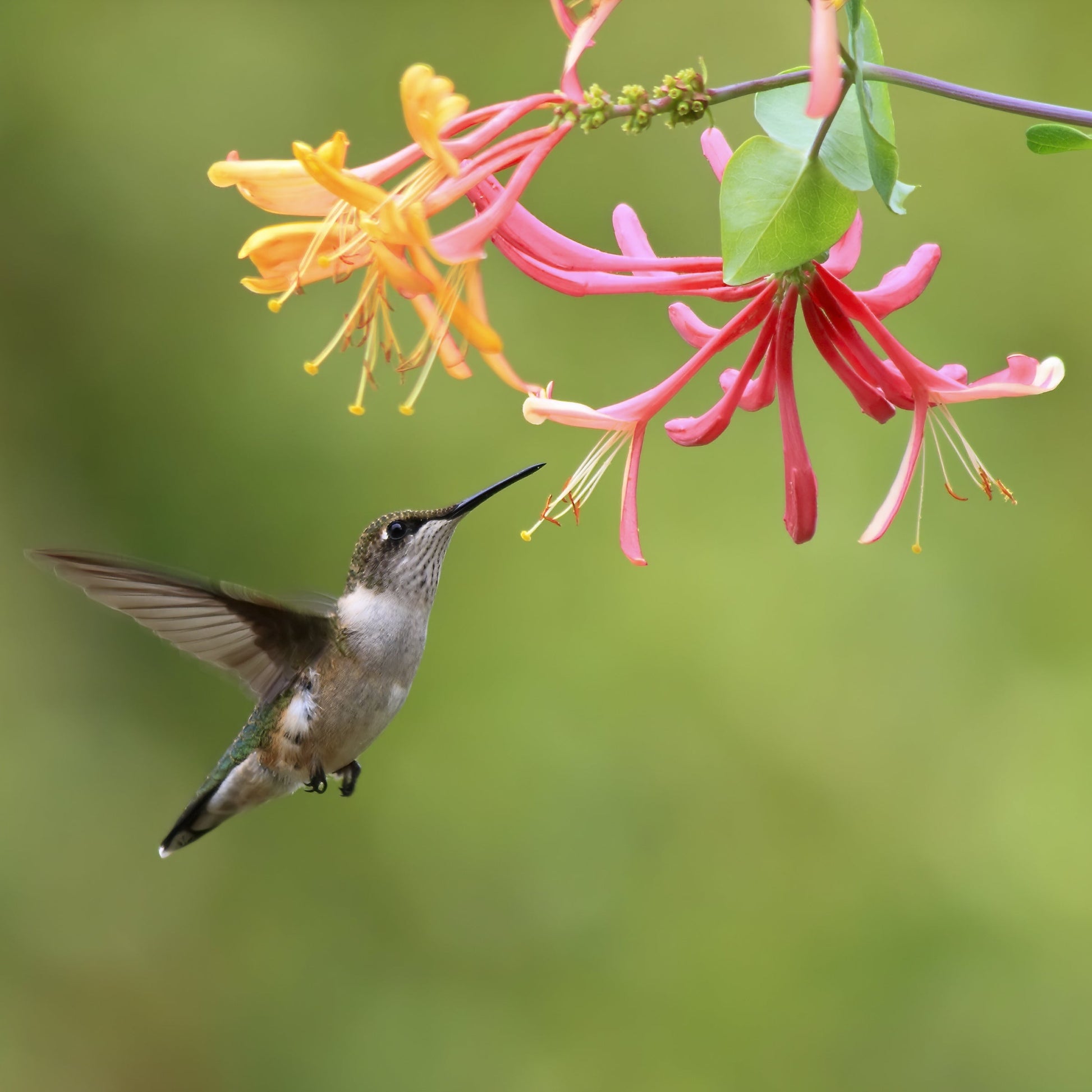 Bicolor blooms in soft pink and cream with a sweetness that draws hummingbirds from across the yard. A compact, manageable vine for trellises or groundcover—fragrance and fluttering visitors without the wild tangle of old-fashioned honeysuckle.