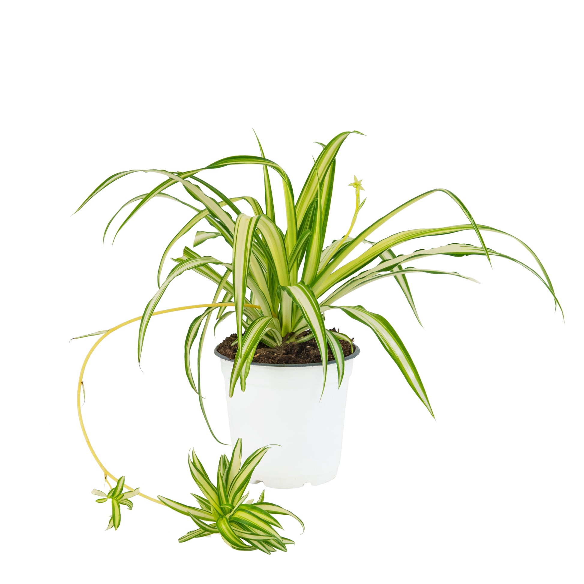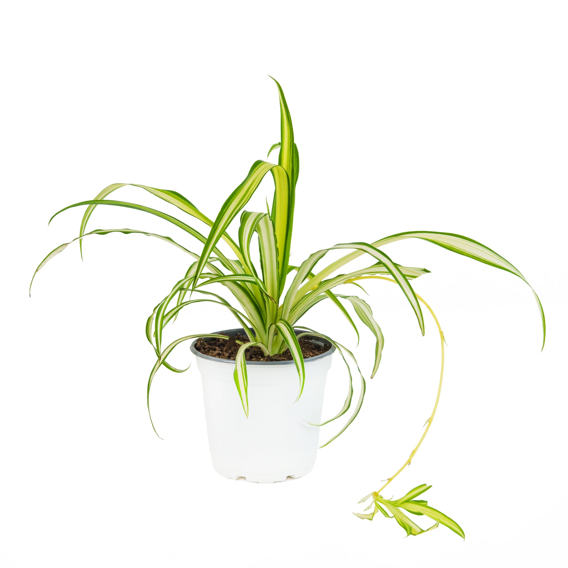The easiest houseplant to grow! The ribbon plant, also known as the spider plant, features artfully striped green and cream leaves in a rosette form. Originally from South Africa, this easy-care houseplant has made its way around the world and become a must-have houseplant!