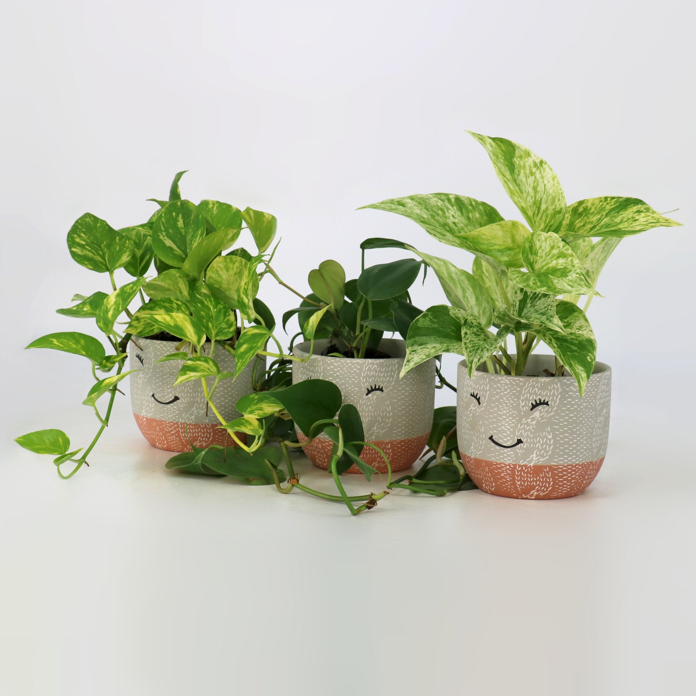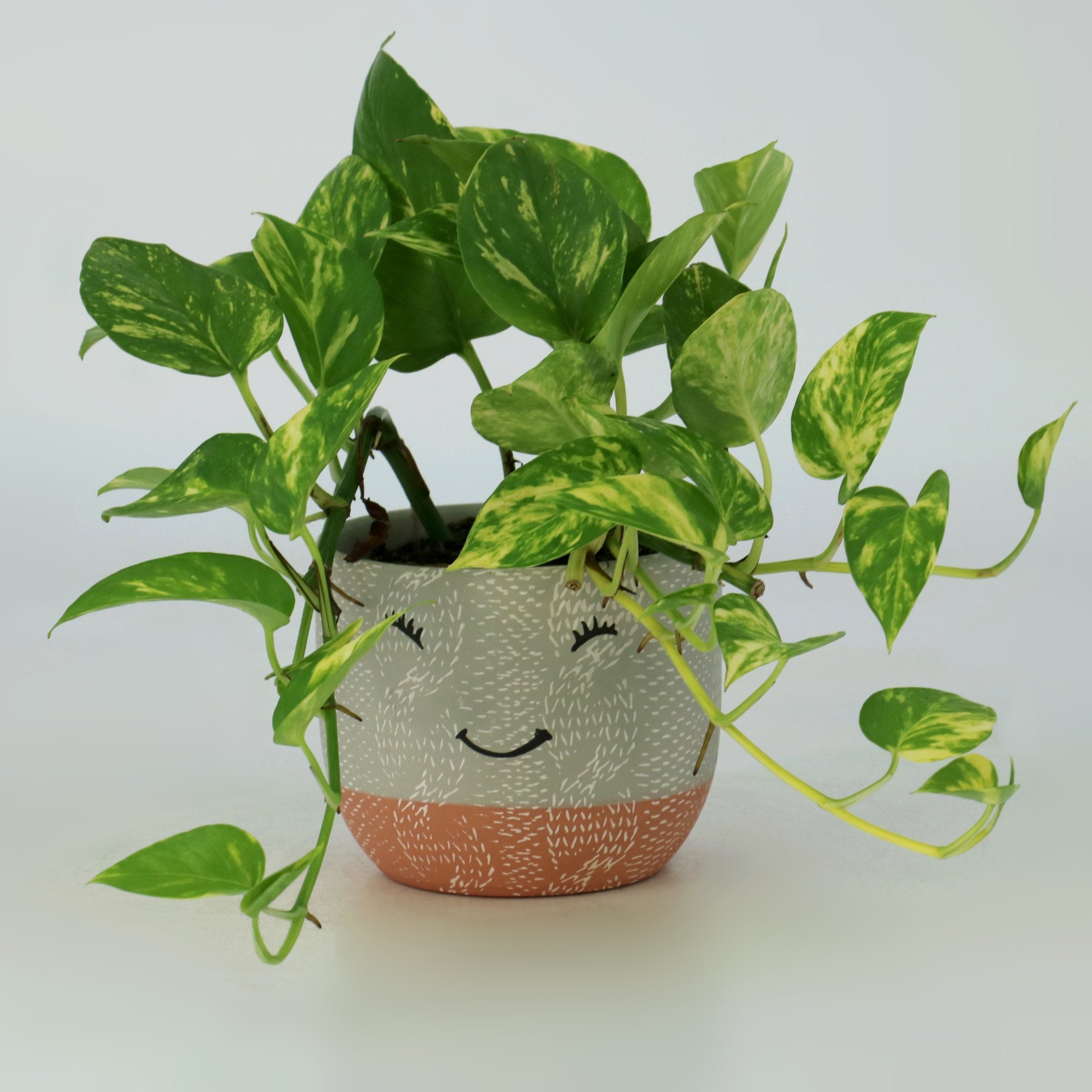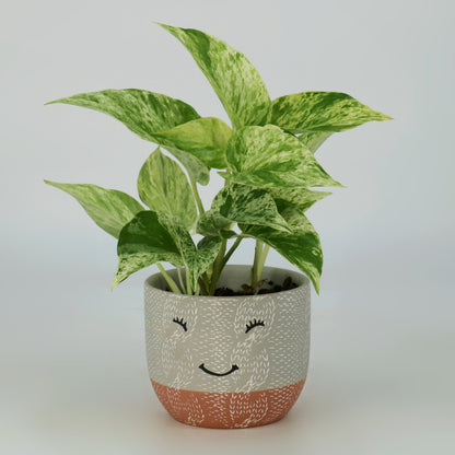This set features a whimsical Smiley Face pot accompanied by an easy to grow Pothos Plant. It makes for a fun and thoughtful gift that is sure to bring joy! Better than another coffee cup and less calories that fudge.
