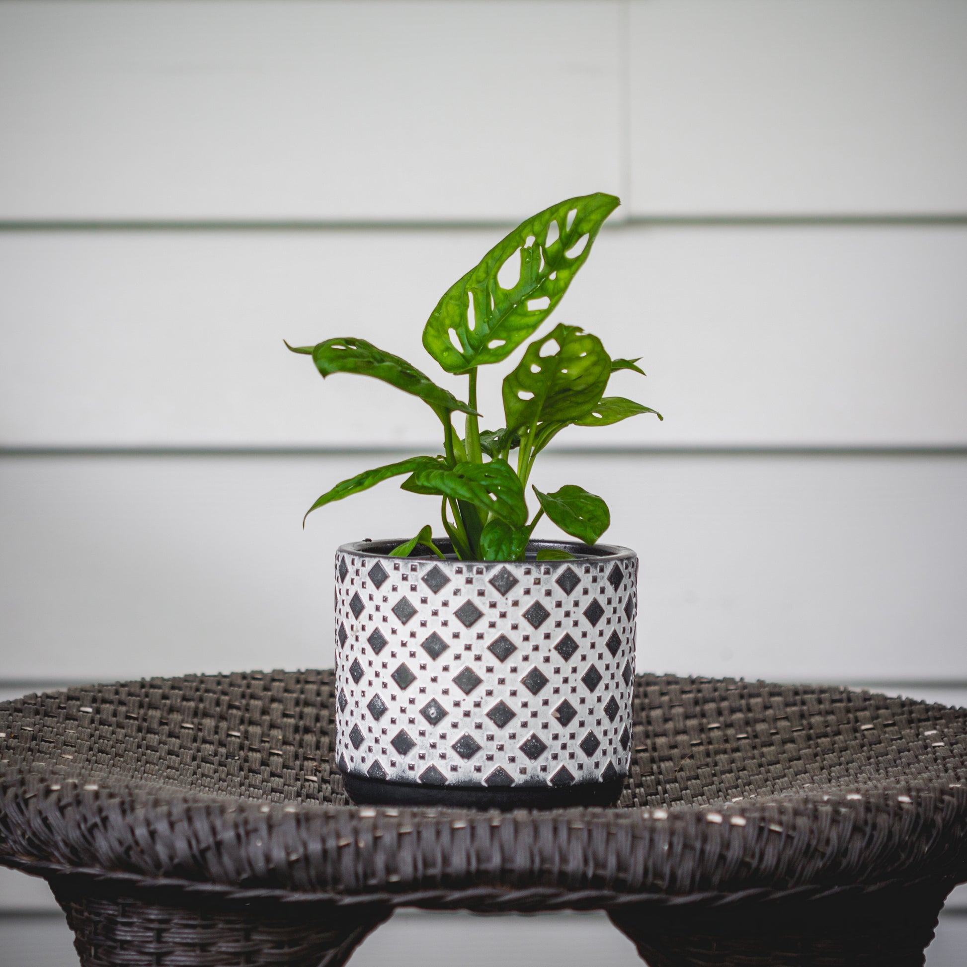 Monstera adansonii, often called the Swiss Cheese Vine, is a tropical climbing aroid known for its delicate, oval leaves punctuated by dramatic fenestrations that give it a lace-like appearance. As it matures, the vine develops a trailing or climbing habit that lends a lush, architectural feel to indoor spaces, making it a favorite for shelves, trellises, and hanging planters.