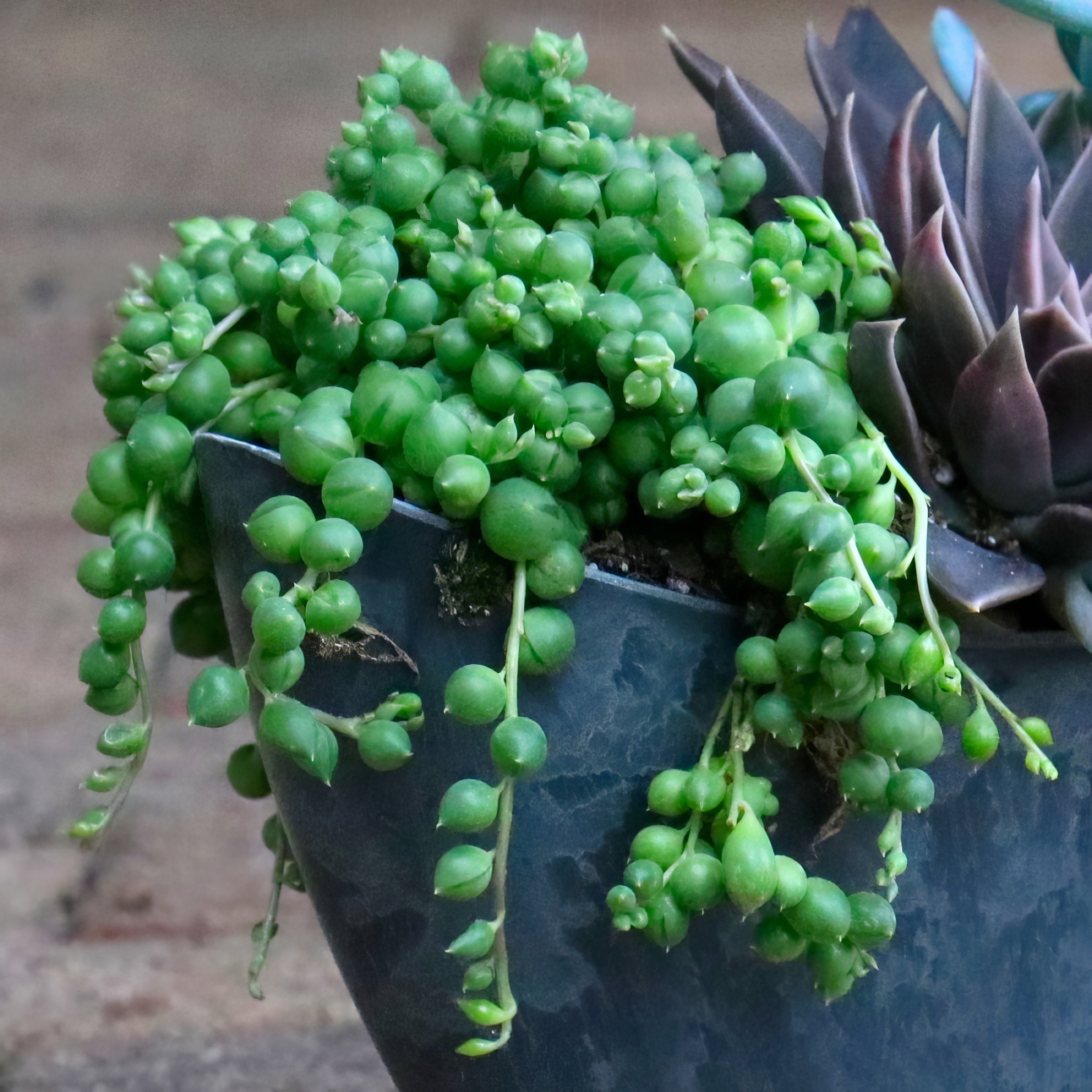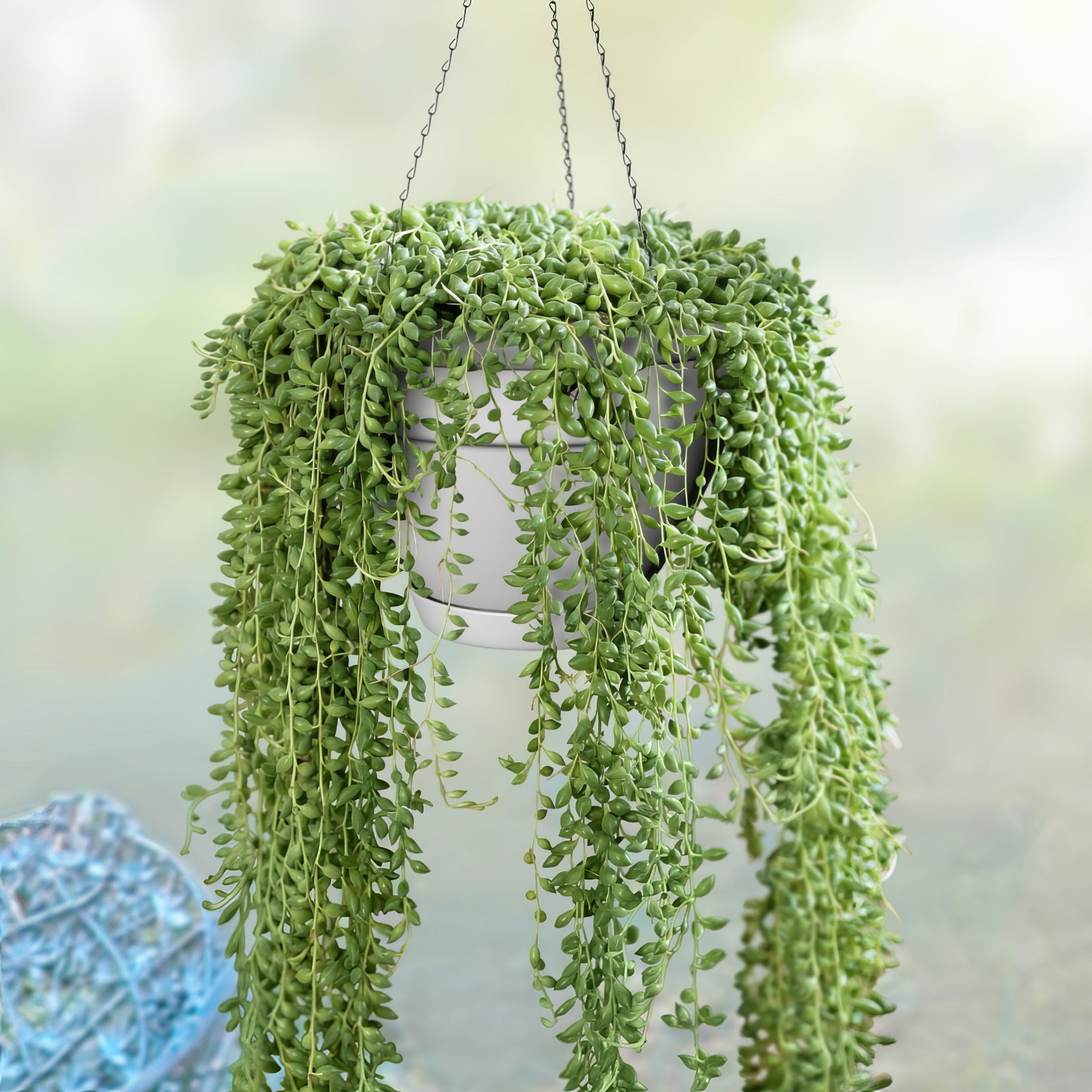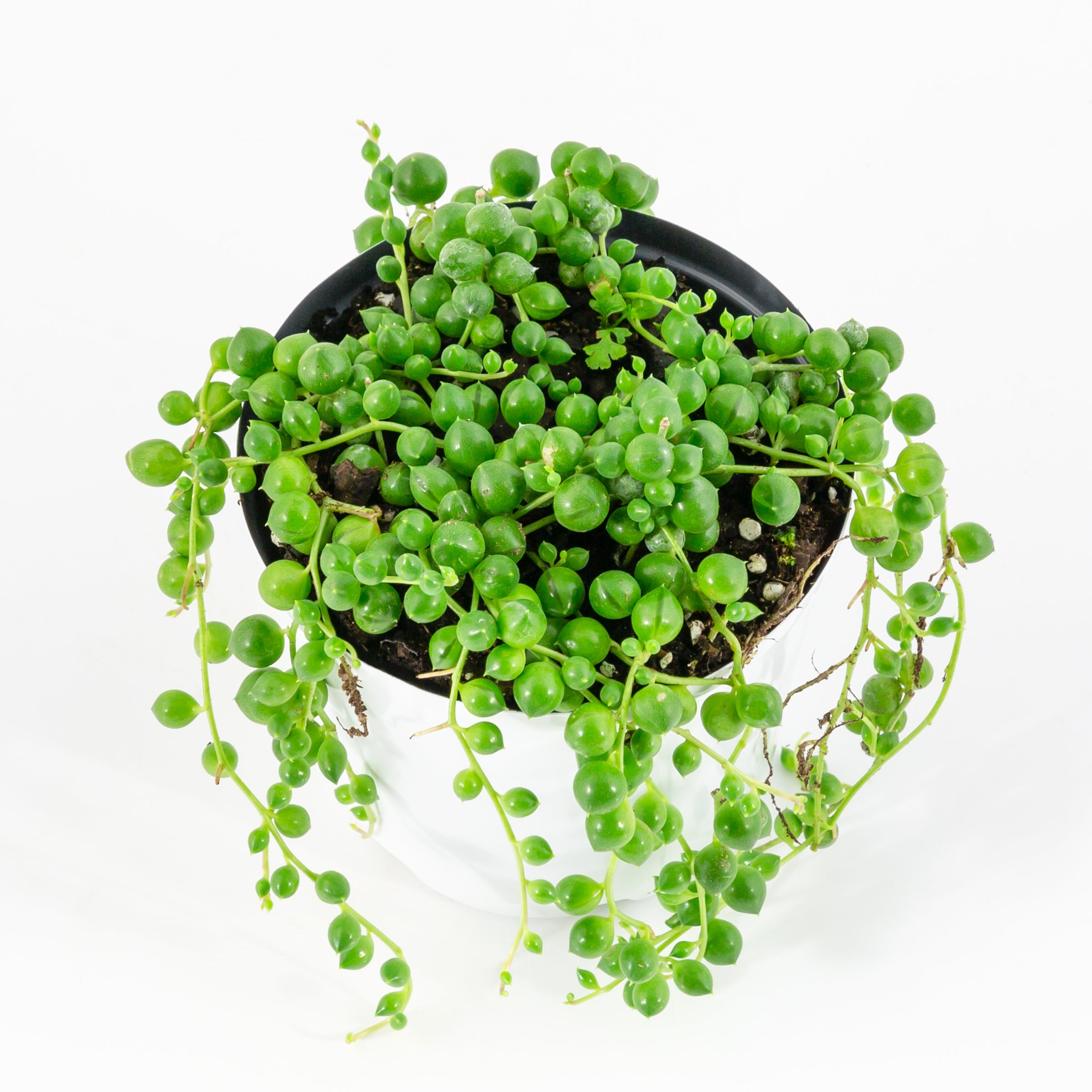 Turn heads with the unique and eye-catching form of String of Pearls, a beloved trailing succulent known for its perfectly round, bead-like leaves that resemble strands of green pearls. String of Pearls adds sculptural elegance and a touch of the unexpected to hanging baskets, shelves, or plant walls with its long, cascading stems that can trail several feet over time. Includes one actively growing plant in a 4" grow pot.
