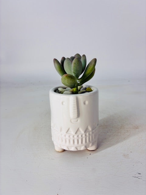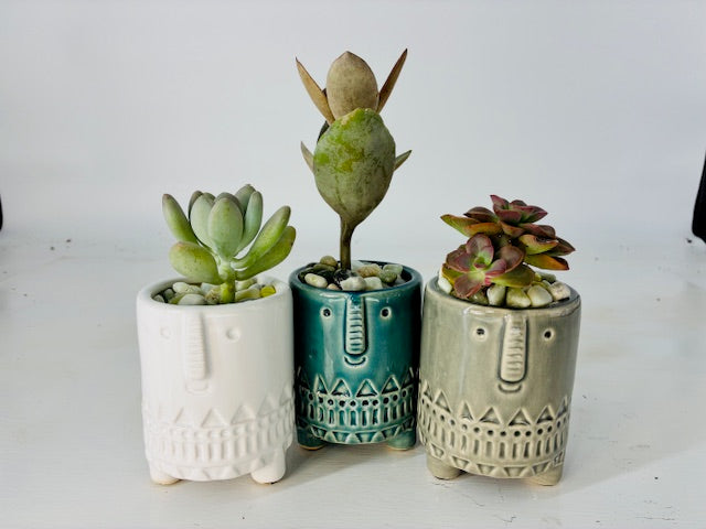 Ceramic pots are both decorative and functional items created by shaping natural raw materials such as clay, water, and minerals. These materials are then fired in a kiln to harden the pots. Known for their aesthetic appeal, ceramic pots often feature glossy finishes and intricate designs. In addition to their beauty, they serve practical purposes, such as retaining moisture for plants and regulating temperature. Ceramic pots are durable and come in a variety of shapes and patterns. They can also be glazed to provide either a decorative or protective surface. This set contains 3 QTY / Succulent pots.