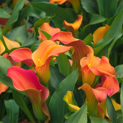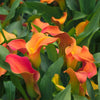 Introducing the enchanting Calla Calista, a breathtaking beauty. This captivating plant is a vigorous grower, creating a striking clump that stands 2 feet tall and 18 inches wide, adorned with large, arrow-shaped leaves splashed with delicate white spots.